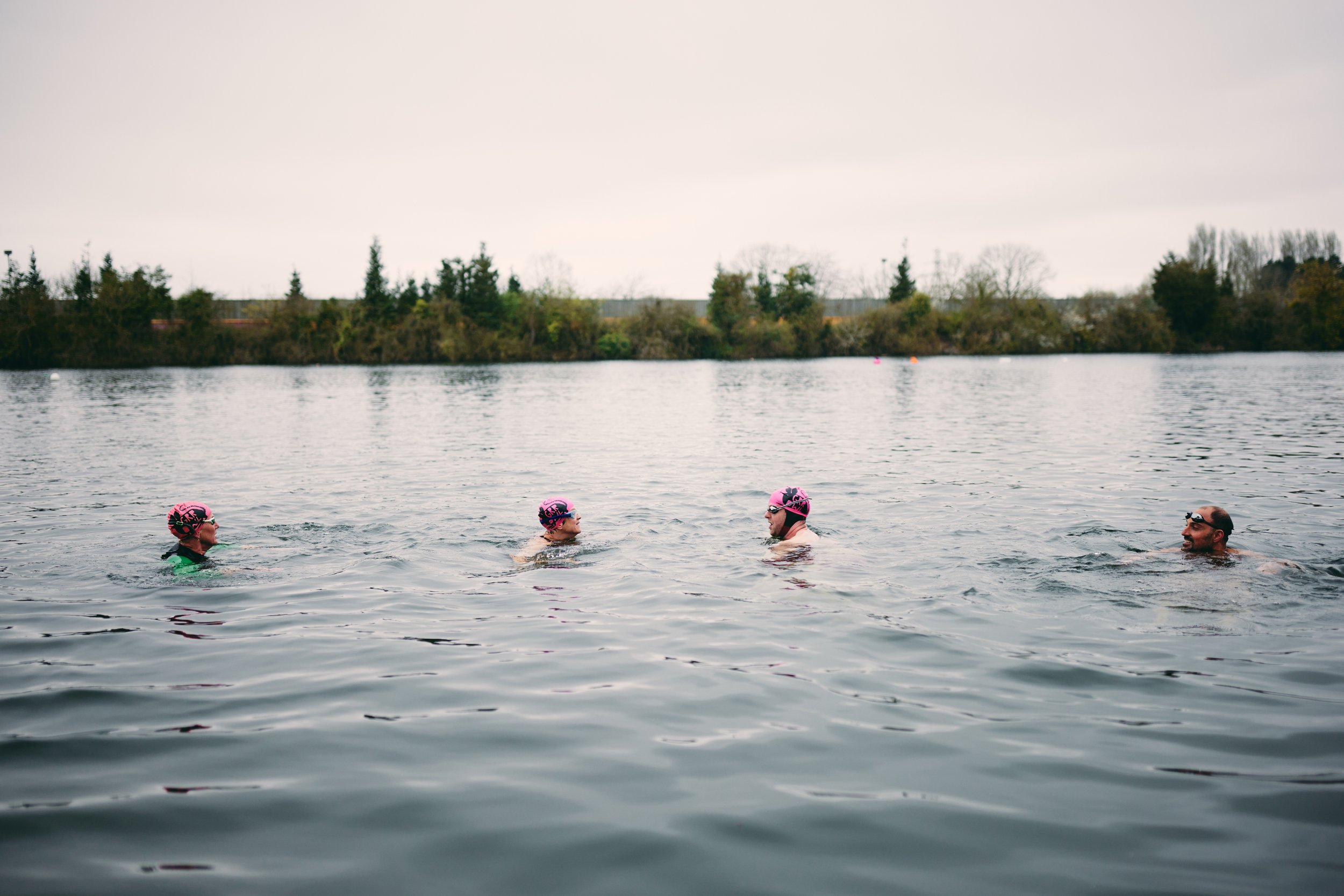 Headset communication in open water, keeping the coach in direct contact with the swimmers